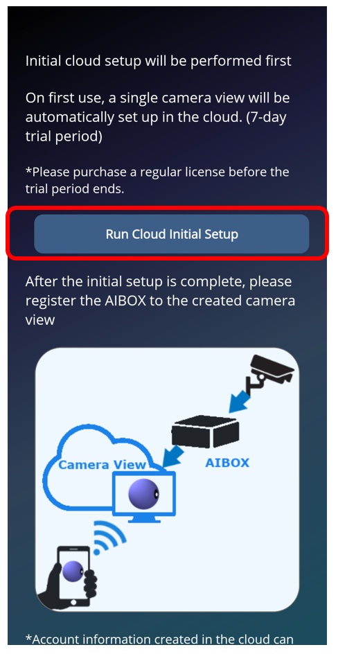 When you launch the mobile app and sign in, the cloud initial setup screen will be displayed.