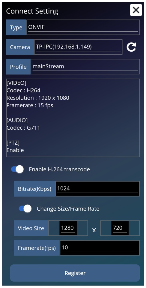 However, enabling H.264 transcode increases AIBOX processing load, so please select a profile with lower resolution and frame rate from the camera stream when possible.