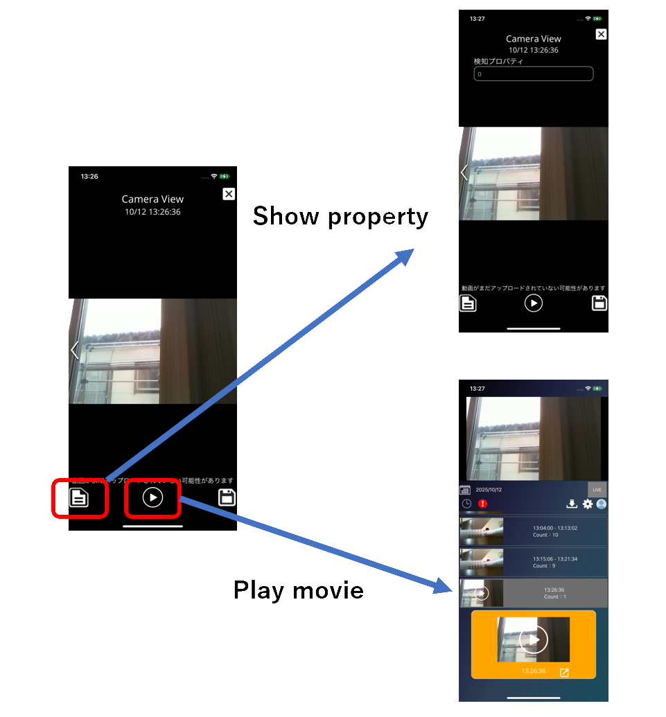 The timestamp of the aicap push command is also tagged on the recorded video. Press the play button in the app to start playback from 5 seconds before the push.