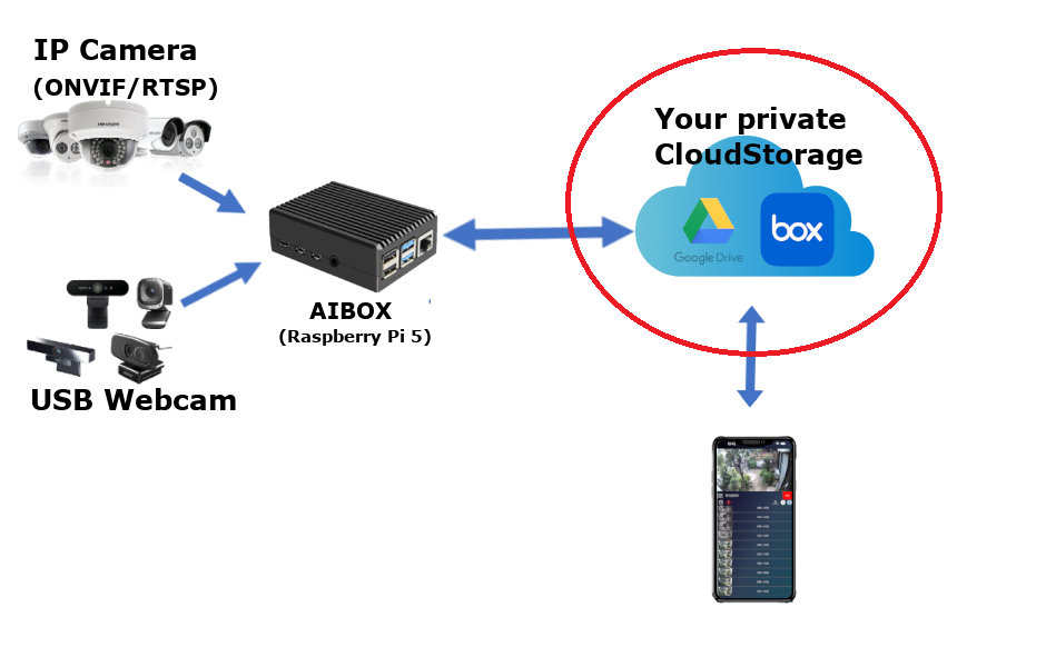 録画データは設定されたクラウドストレージに直接保存され、当社では録画データの保存・管理・閲覧を一切行いません。