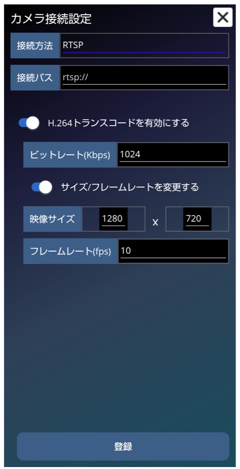 ネットワークカメラをRTSPプロトコルで接続する場合の設定手順です。