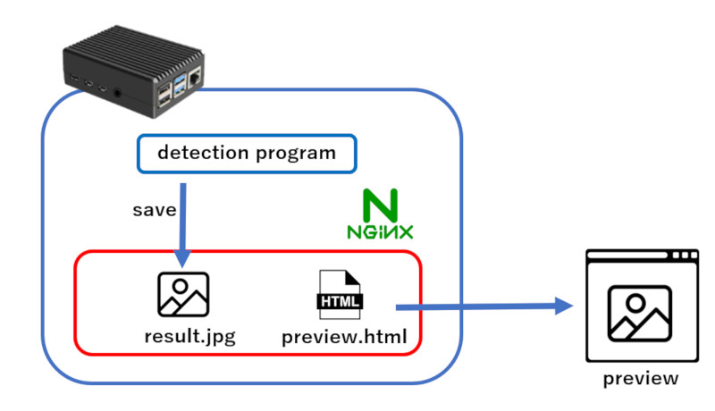 AIBOX OS has Nginx, a lightweight HTTP server, pre-installed. In Nginx's public directory (/var/www/html), there is a built-in preview.html for viewing detection result images.