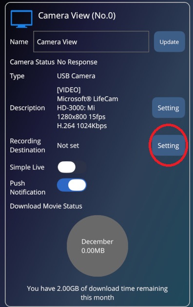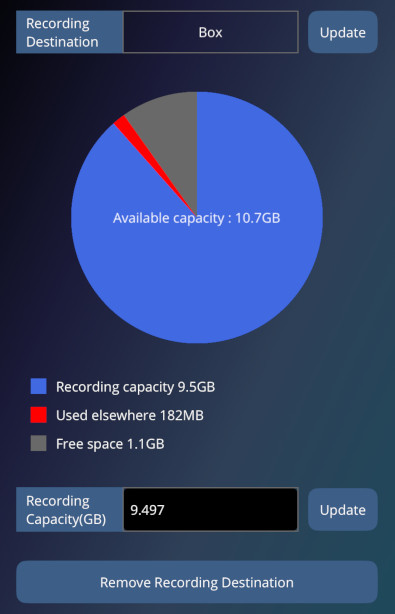 Enter the recording capacity in Recording Capacity (GB) and press the "Update" button to change the recording capacity.