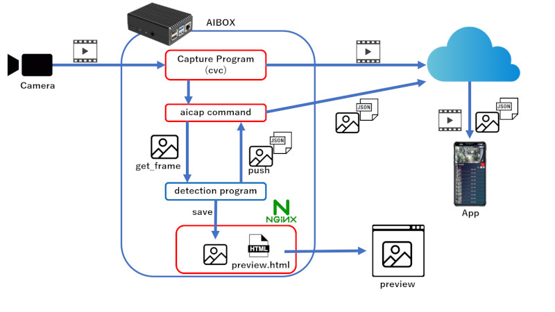 A built-in command in AIBOX OS. Retrieves camera frame images from the capture program and sends push notifications via the cloud. |